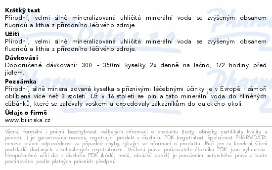 Přírodní, velmi silně mineralizovaná uhličitá minerální voda se zvýšeným obsahem fluoridů a lithia z přírodního léčivého zdroje.
