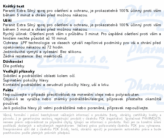 Paranit Extra Silný sprej pro ošetření a ochranu, je prokazatelně 100% účinný proti vším během 5 minut a chrání před možnou nákazou.
