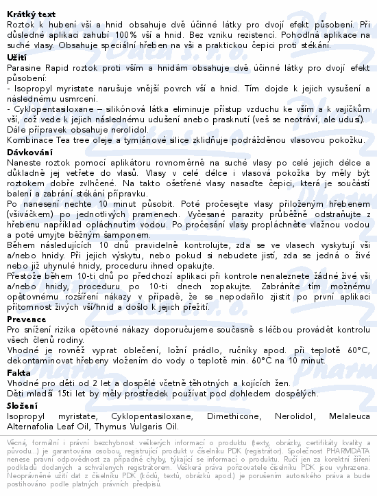 Roztok k hubení vší a hnid obsahuje dvě účinné látky pro dvojí efekt působení. Při důsledné aplikaci zahubí 100% vší a hnid. Bez vzniku rezistencí. Pohodlná aplikace na suché vlasy. Obsahuje speciální hřeben na vši a praktickou čepici proti stékání.