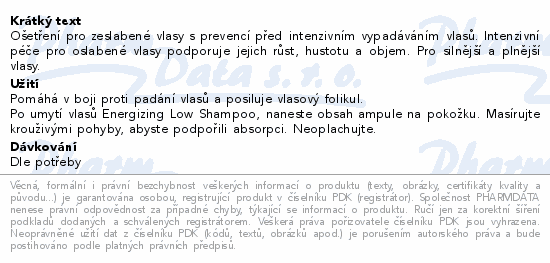 Ošetření pro zeslabené vlasy s prevencí před intenzivním vypadáváním vlasů. Intenzivní péče pro oslabené vlasy podporuje jejich růst, hustotu a objem. Pro silnější a plnější vlasy.
