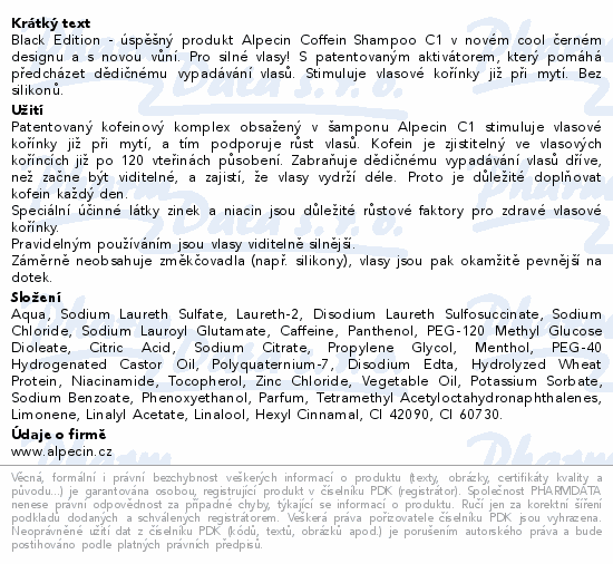Black Edition - úspěšný produkt Alpecin Coffein Shampoo C1 v novém cool černém designu a s novou vůní. Pro silné vlasy! S patentovaným aktivátorem, který pomáhá předcházet dědičnému vypadávání vlasů. Stimuluje vlasové kořínky již při mytí. Bez silikonů.