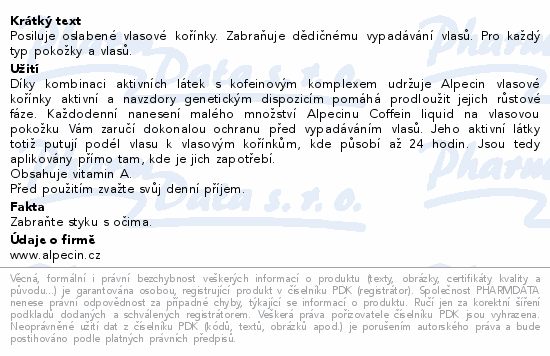 Posiluje oslabené vlasové kořínky. Zabraňuje dědičnému vypadávání vlasů. Pro každý typ pokožky a vlasů.