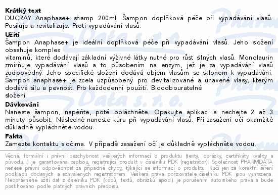 DUCRAY Anaphase+ shamp 200ml. Šampon doplňková péče při vypadávání vlasů. Posiluje a revitalizuje. Proti vypadávání vlasů.