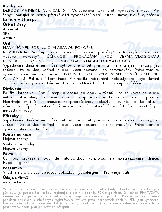DERCOS AMINEXIL CLINICAL 5 - Multiúčelová kúra proti vypadávání vlasů. Pro ženy/Opakující se nebo přetrvávající vypadávání vlasů. Stres. Únava. Nová vylepšená formule – 21 ampulí.
