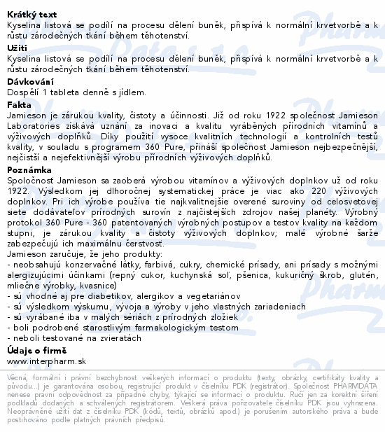 Jamieson Kysel.listová 1000 mcg tbl.100