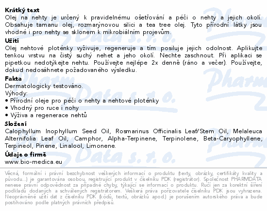Olej na nehty je určený k pravidelnému ošetřování a péči o nehty a jejich okolí. Obsahuje tamanu olej, rozmarýnovou silici a tea tree olej. Tyto přírodní látky jsou vhodné i pro nehty se sklonem k mikrobiálním projevům.