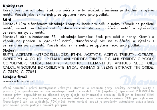 Kúra obsahuje komplex látek pro péči o nehty, výtažek z ženšenu je vhodný na výživu nehtů. Použití jako lak na nehty se třpytem nebo jako podlak.