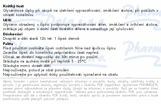 Glycerinové čípky při zácpě na ulehčení vyprazdňování, změkčení stolice, při potížích v oblasti konečníku.