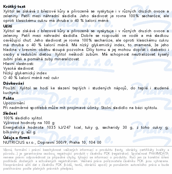 Xylitol se získává z březové kůry a přirozeně se vyskytuje i v různých druzích ovoce a zeleniny. Patří mezi náhradní sladidla. Jeho sladivost je rovna 100% sacharóze, ale oproti klasickému cukru má zhruba o 40 % kalorií méně.