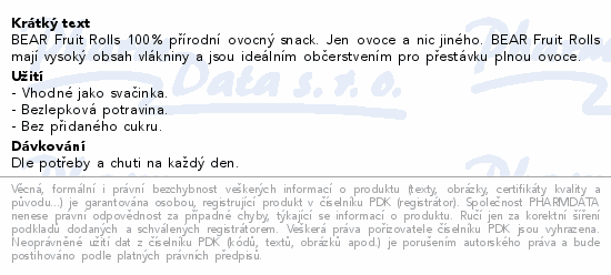 BEAR Fruit Rolls 100% přírodní ovocný snack. Jen ovoce a nic jiného. BEAR Fruit Rolls mají vysoký obsah vlákniny a jsou ideálním občerstvením pro přestávku plnou ovoce.
