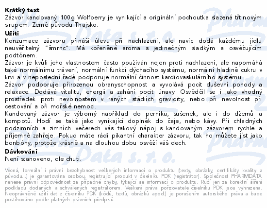 Zázvor kandovaný 100g Wolfberry je vynikající a originální pochoutka slazená třtinovým sirupem. Země původu Thajsko.