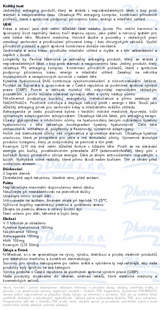 Jedinečný antiaging produkt, který se skládá z nepostradatelných látek v boji proti stárnutí a neúprosnému času. Obsahuje PN antiaging komplex, kombinaci přírodních pokladů, které v symbióze podporují přirozenou krásu, energii a mladiství vzhled.
