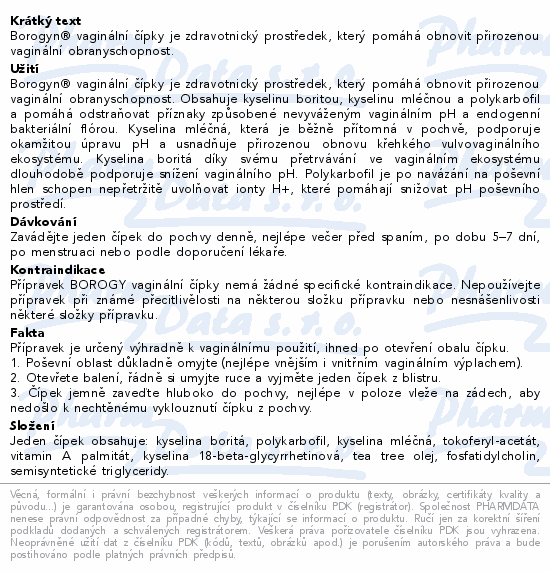 Borogyn® vaginální čípky je zdravotnický prostředek, který pomáhá obnovit přirozenou vaginální obranyschopnost.