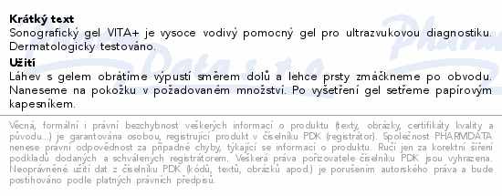 Sonografický gel VITA+ je vysoce vodivý pomocný gel pro ultrazvukovou diagnostiku. Dermatologicky testováno.