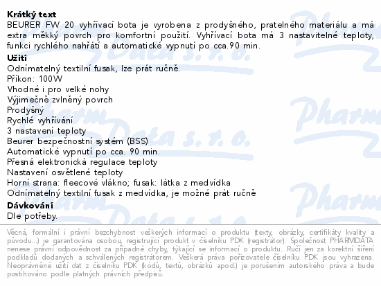 BEURER FW 20 vyhřívací bota je vyrobena z prodyšného, pratelného materiálu a má extra měkký povrch pro komfortní použití. Vyhřívací bota má 3 nastavitelné teploty, funkci rychlého nahřátí a automatické vypnutí po cca.90 min.