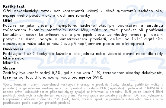 Oční viskoelastický roztok bez konzervantů určený k léčbě symptomů suchého oka, nepříjemného pocitu v oku a k ochraně rohovky.