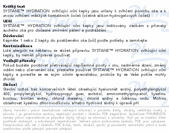 SYSTANE HYDRATION zvlhčující oční kapky je sterilní roztok používány pro dočasné zmírnění pálení a podráždění v důsledku suchosti oka.