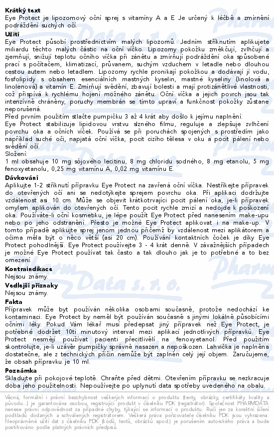 Eye Protect je lipozomový oční sprej s vitamíny A a E Je určený k léčbě a zmírnění podráždění suchých očí.