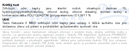 Zvlhčující oční kapky jsou sterilní roztok obsahující dextran 70, hydroxypropylmethylcelulózu, chlorid sodný, chlorid draselný, boritan sodný a konzervační látku POLYQUADTM (polyquaternium-1) 0,0011 %.