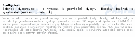 Balónek klysterovací - s tryskou, k provádění klystýru. Bezešvý balónek s vyvařovatelnými částmi, netoxický.