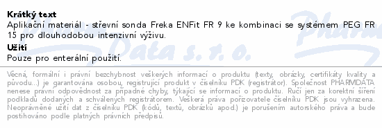 Aplikační materiál - střevní sonda Freka ENFit FR 9 ke kombinaci se systémem PEG FR 15 pro dlouhodobou intenzivní výživu.