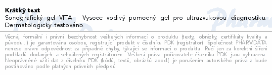 Sonografický gel VITA - Vysoce vodivý pomocný gel pro ultrazvukovou diagnostiku. Dermatologicky testováno.