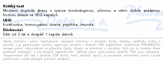 Moderní doplněk stravy s vysoce biodostupnou, účinnou a velmi dobře snášenou formou železa ve VEG kapslích.