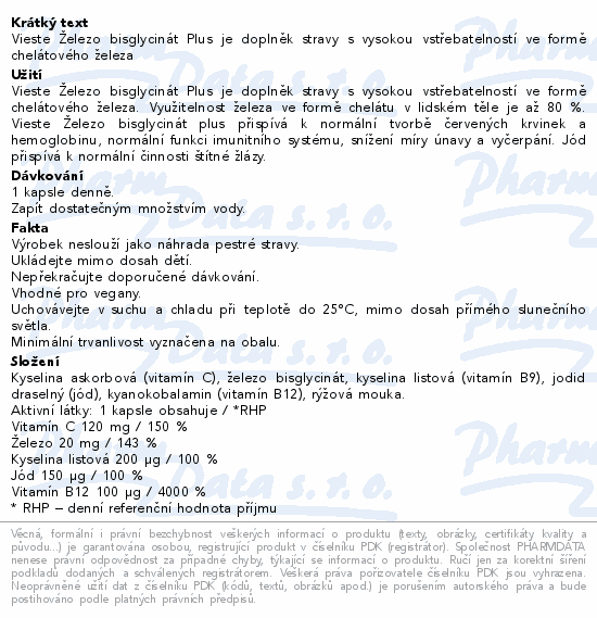 Vieste Železo bisglycinát Plus je doplněk stravy s vysokou vstřebatelností ve formě chelátového železa