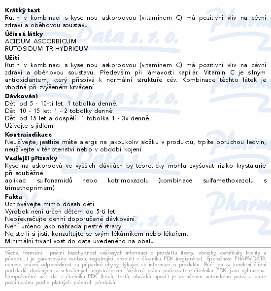 Rutin v kombinaci s kyselinou askorbovou (vitamínem C) má pozitivní vliv na cévní zdraví a oběhovou soustavu.