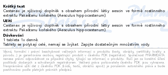 Castanax je výživový doplněk s obsahem přírodní látky aescin ve formě rostlinného extraktu Pakaštanu koňského (Aesculus hippocastanum).
