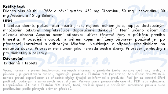 Diohes plus 60 tbl. - Péče o cévní systém. 450 mg Diosminu, 50 mg Hesperidinu, 30 mg Aescinu a 15 µg Selenu.