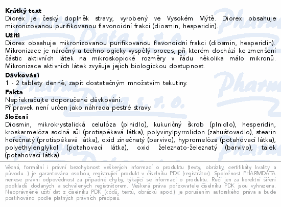 Diorex je český doplněk stravy, vyrobený ve Vysokém Mýtě. Diorex obsahuje mikronizovanou purifikovanou flavonoidní frakci (diosmin, hesperidin).