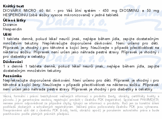 DIOVARIX MICRO 60 tbl. - pro Váš žilní systém - 450 mg DIOSMINU a 50 mg HESPERIDINU (obě složky vysoce mikronizované) v jedné tabletě.