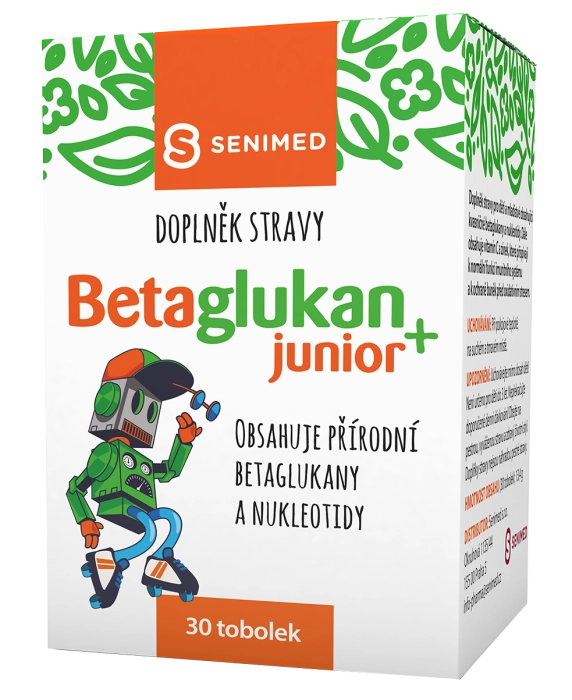 Betaglukan JUNIOR obsahuje přírodní betaglukany a nukleotidy doplněné o vitamin C a zinek. Přípravek doporučujeme užívat v období zvýšeného výskytu chřipek a nachlazení, při únavě a zhoršení zraku. Je vhodný pro děti a mladistvé od 3 let.