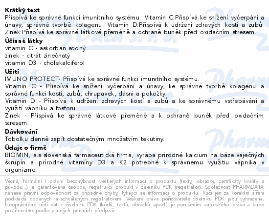 Přispívá ke správné funkci imunitního systému. Vitamin C:Přispívá ke snížení vyčerpání a únavy, správné tvorbě kolagenu. Vitamin D:Přispívá k udržení zdravých kostí a zubů. Zinek:Přispívá ke správné látkové přeměně a ochraně buněk před oxidačním stresem.