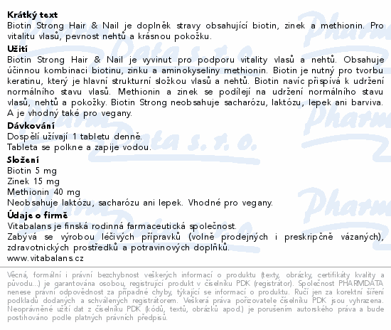 Biotin Strong Hair & Nail je doplněk stravy obsahující biotin, zinek a methionin. Pro vitalitu vlasů, pevnost nehtů a krásnou pokožku.