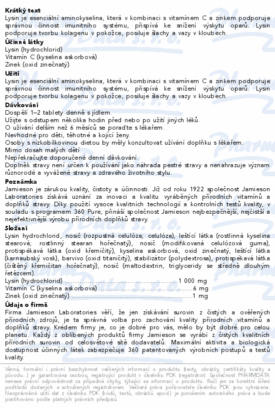 Jamieson Lysin 1000mg se zinkem a vit.C