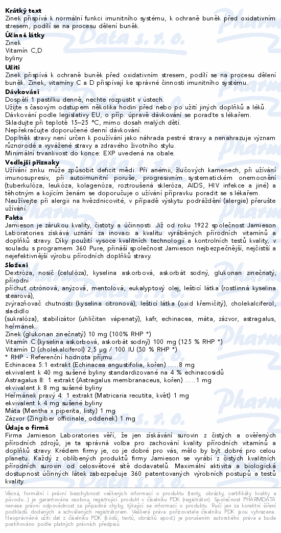 JAMIESON Zinek vit.C+D3 prich.citron-mat