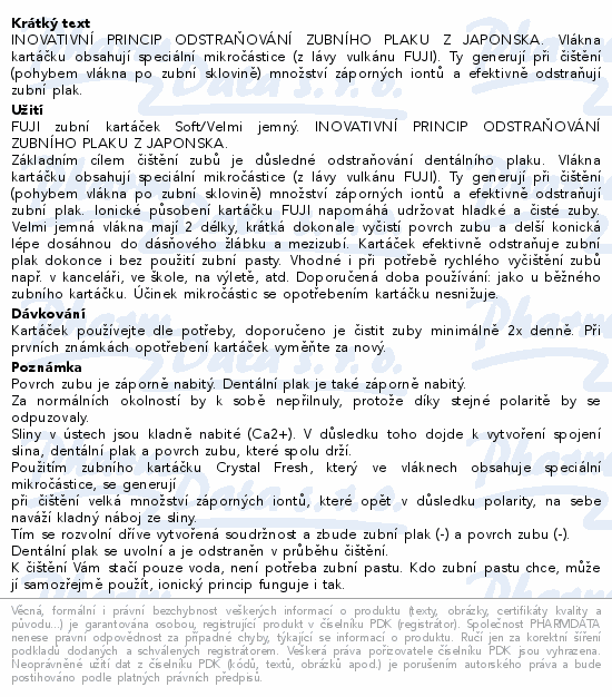 INOVATIVNÍ PRINCIP ODSTRAŇOVÁNÍ ZUBNÍHO PLAKU Z JAPONSKA. Vlákna kartáčku obsahují speciální mikročástice (z lávy vulkánu FUJI). Ty generují při čištění (pohybem vlákna po zubní sklovině) množství záporných iontů a efektivně odstraňují zubní plak.