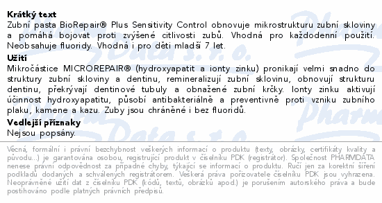 Zubní pasta BioRepair® Plus Sensitivity Control obnovuje mikrostrukturu zubní skloviny a pomáhá bojovat proti zvýšené citlivosti zubů. Vhodná pro každodenní použití. Neobsahuje fluoridy. Vhodná i pro děti mladší 7 let.