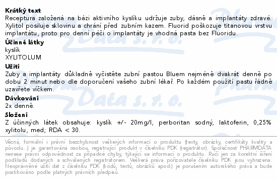 Receptura založená na bázi aktivního kyslíku udržuje zuby, dásně a implantáty zdravé. Xylitol posiluje sklovinu a chrání před zubním kazem. Fluorid poškozuje titanovou vrstvu implantátu, proto pro denní péči o implantáty je vhodná pasta bez Fluoridu.