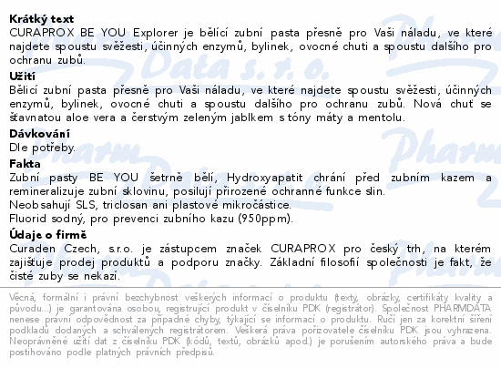 CURAPROX BE YOU Explorer je bělící zubní pasta přesně pro Vaši náladu, ve které najdete spoustu svěžesti, účinných enzymů, bylinek, ovocné chuti a spoustu dalšího pro ochranu zubů.