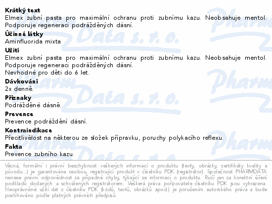 Elmex zubní pasta pro maximální ochranu proti zubnímu kazu. Neobsahuje mentol. Podporuje regeneraci podrážděných dásní.