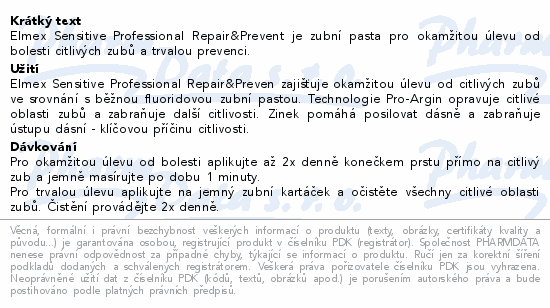 Elmex Sensitive Professional Repair&Prevent je zubní pasta pro okamžitou úlevu od bolesti citlivých zubů a trvalou prevenci.