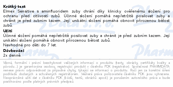 Elmex Sensitive s aminfluoridem zuby chrání díky klinicky ověřenému složení pro ochranu před citlivostí zubů. Účinné složení pomáhá nepřetržitě posilovat zuby a chránit je před zubním kazem. Její unikátní složení pomáhá obnovit přirozenou bělost zubů.