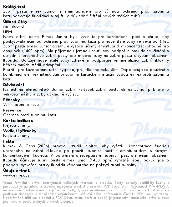Zubní pasta elmex Junior s aminfluoridem pro účinnou ochranu proti zubnímu kazu,poskytuje fluoridaci a zajišťuje důkladné čištění nových stálých zubů.