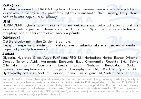 HERBADENT ORIGINAL byl. zub. pasta 100g