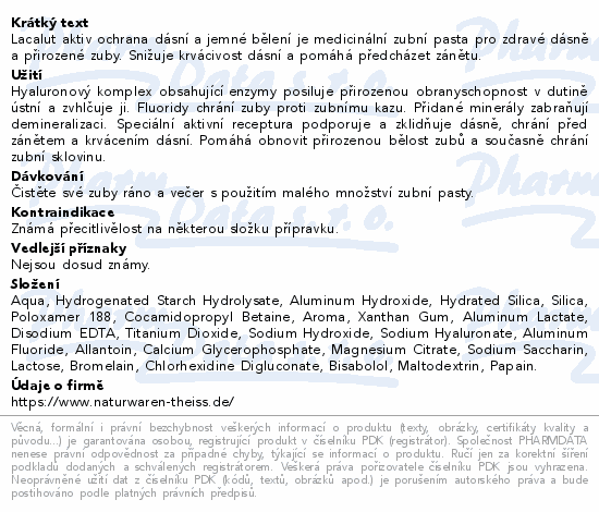 Lacalut aktiv ochrana dásní a jemné bělení je medicinální zubní pasta pro zdravé dásně a přirozené zuby. Snižuje krvácivost dásní a pomáhá předcházet zánětu.