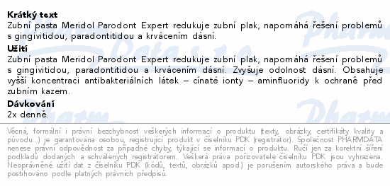 Zubní pasta Meridol Parodont Expert redukuje zubní plak, napomáhá řešení problemů s gingivitidou, paradontitidou a krvácením dásní.