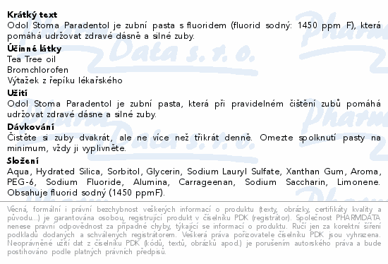 Odol Stoma Paradentol je zubní pasta s fluoridem (fluorid sodný: 1450 ppm F), která pomáhá udržovat zdravé dásně a silné zuby.